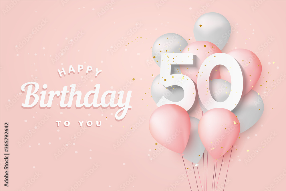 Αυτοκόλλητο Happy 50th birthday balloons greeting card background