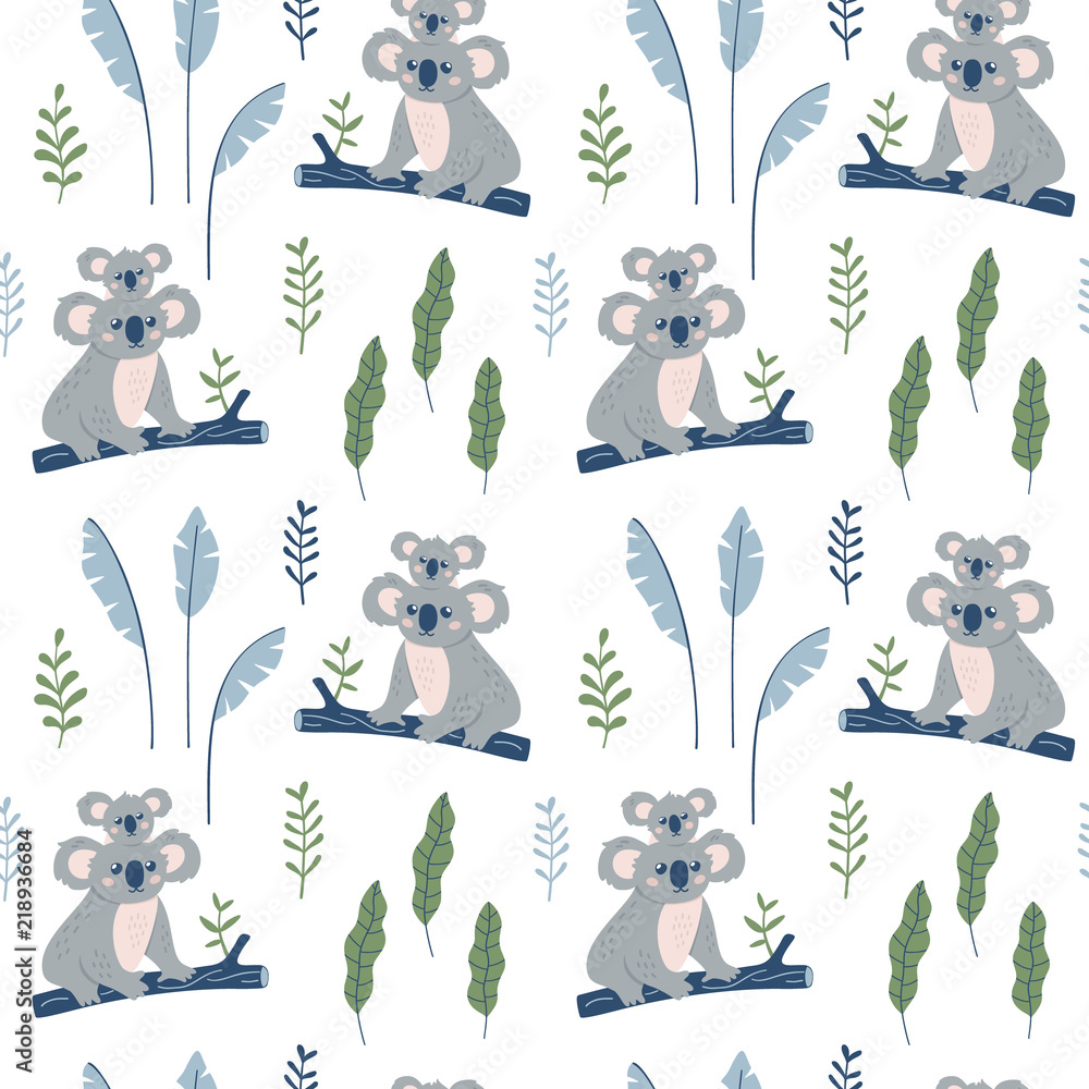 Ταπετσαρία Hand drawn seamless pattern with Koala mother and Koala child