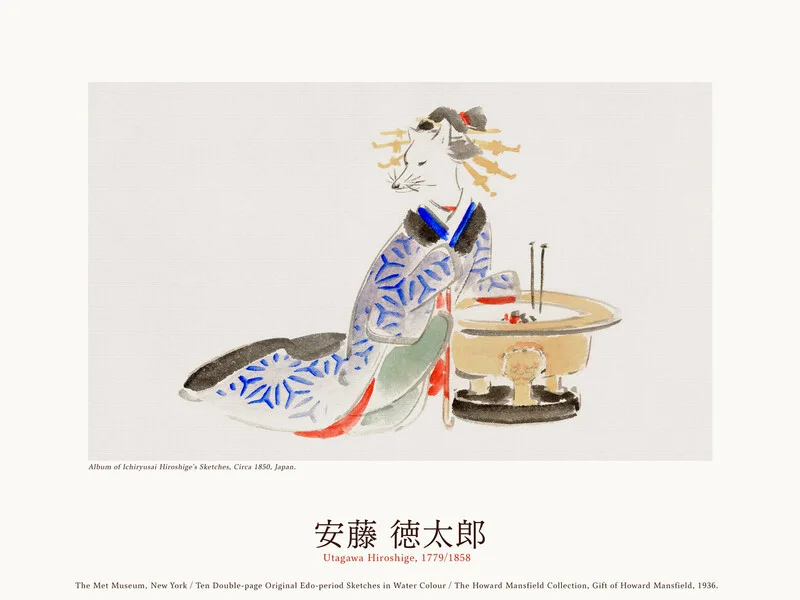 Αυτοκόλλητο Fox in a Kimono (Japanese Animal Sketch) - Utagawa Hiroshige