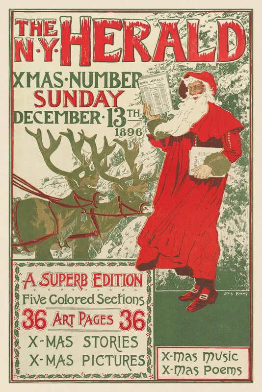 Αφίσα The New York Herald, Christmas Number 1896 (Festive Vintage Xmas Poster ft. Santa) - Louis Rhead