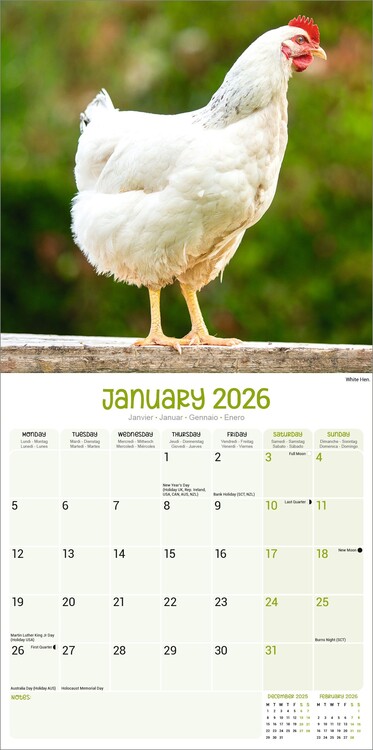 • Το ημερολόγιο Chickens μπορεί να κρεμαστεί σε οποιοδήποτε τοίχο
