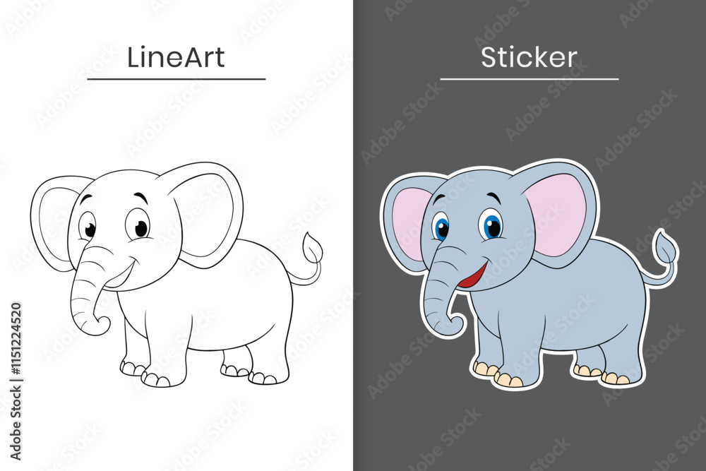 Φωτογραφία Cute cartoon baby elephant vector outline and sticker