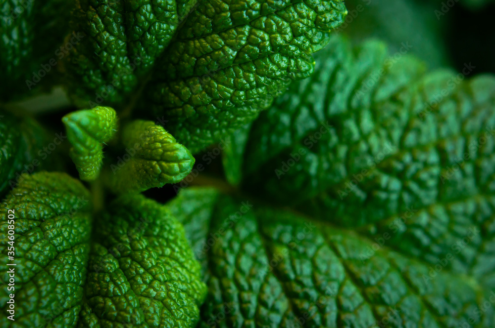 Εκτύπωση καμβά Green fresh leaves of mint, lemon balm close-up macro shot