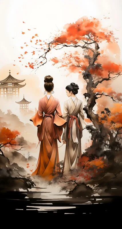 Αφίσα 2 Japanese women in garden