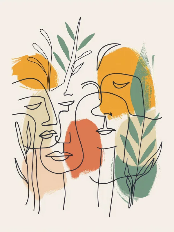 Αυτοκόλλητο Abstract Line Art Faces, Botanical wall art decoration