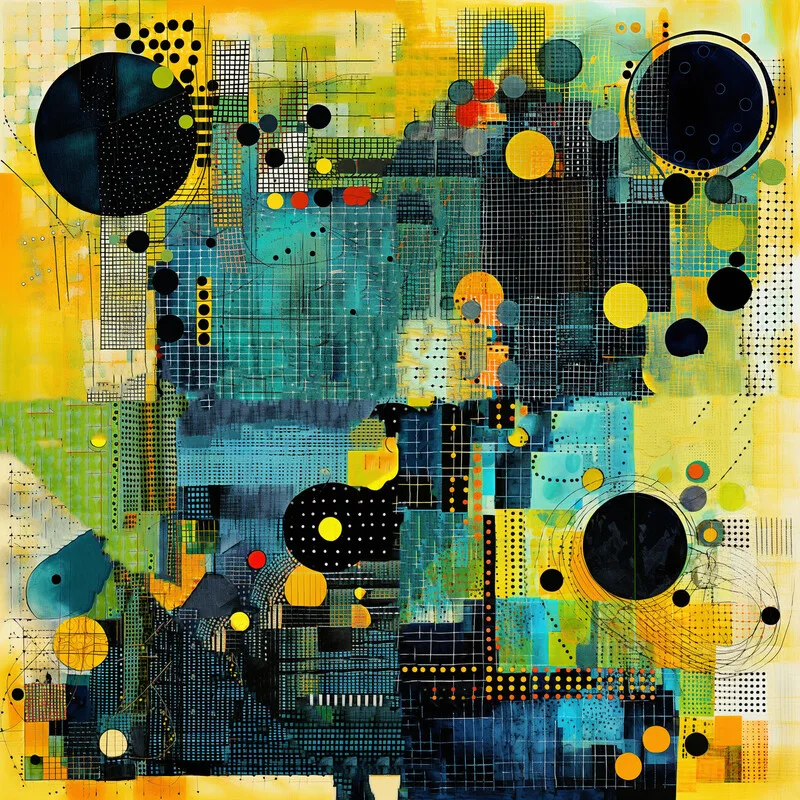 Εκτύπωση καμβά abstract painting composition yellow, blue, navy green & red