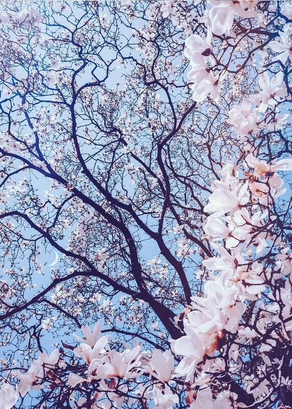 Εκτύπωση καμβά Aesthetic Cherry Pink Flowers and Blue Sky