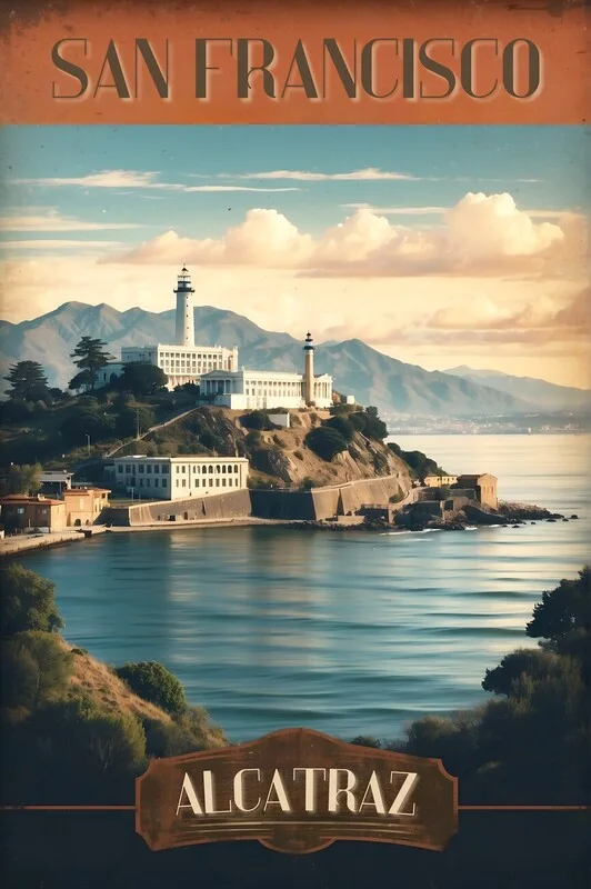 Αυτοκόλλητο Alcatraz Vintage Travel Poster - Historic Island Art