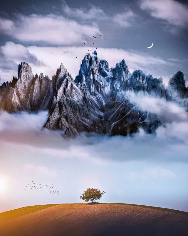 Εκτύπωση καμβά Alone tree in front of the mountain
