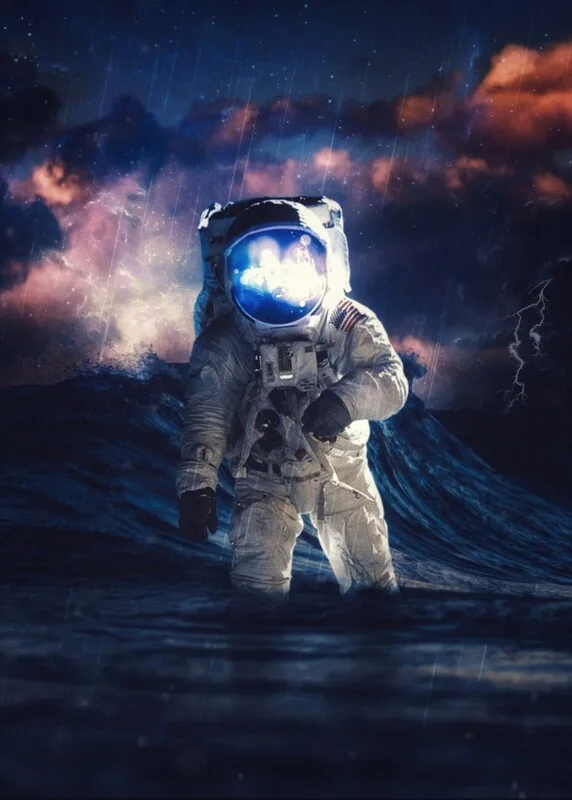 Αυτοκόλλητο Astronaut by Wave under thunderstorm