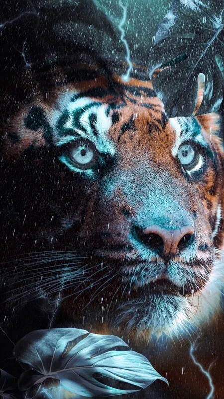 Εκτύπωση καμβά Blue eyed tiger in the rain