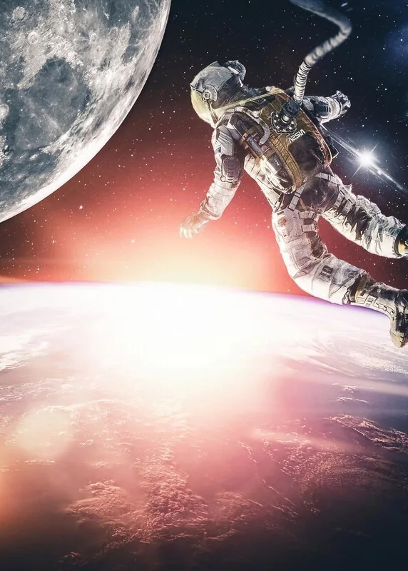 Εκτύπωση καμβά Cosmonaut in space between eart and moon