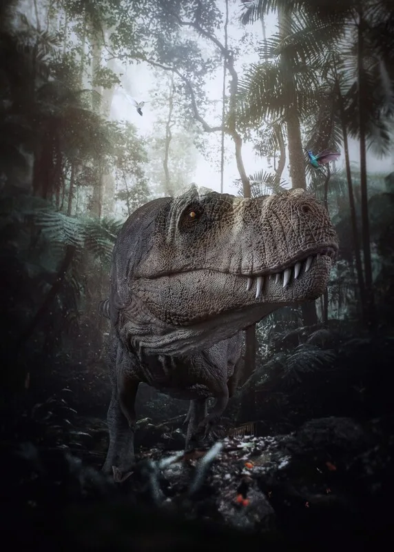 Εκτύπωση καμβά Dinosaur feroce in the green jungle