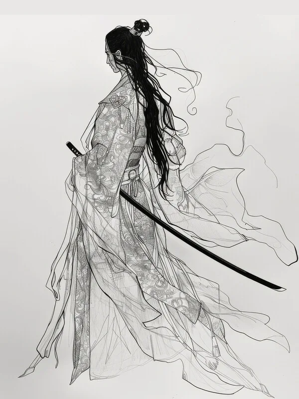 Εκτύπωση καμβά Hand-Drawn Samurai, Traditional Japanese Ink Illustration