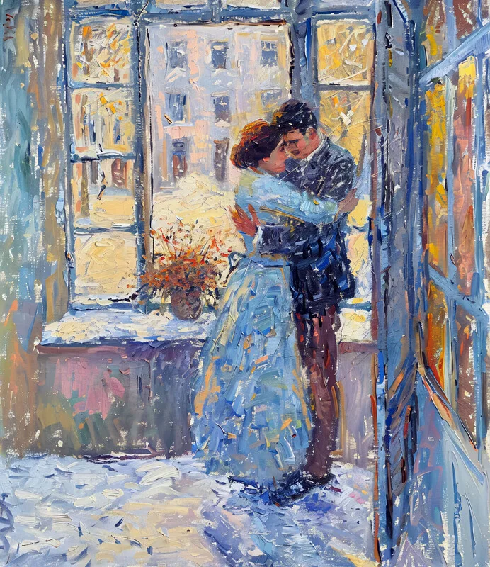 Αφίσα Impressionist oil painting, couple in love, wall art print