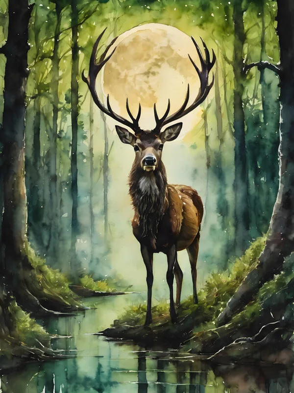 Εκτύπωση καμβά Magestic Stag in Moonlit Forest