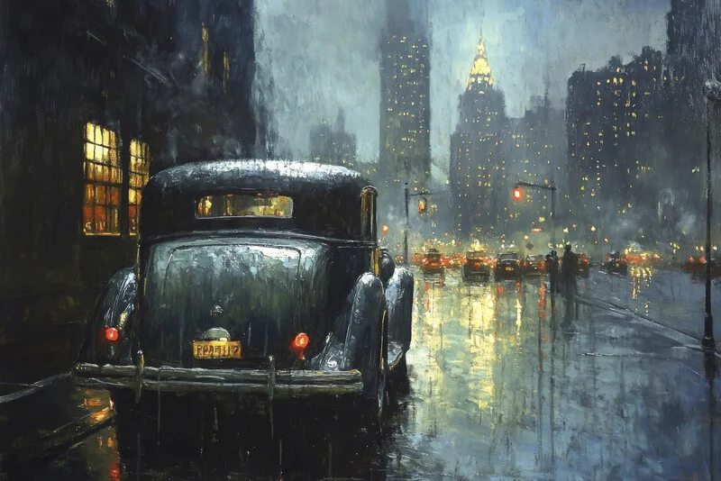 Αυτοκόλλητο Manhattan 1930 in the style of Edward Hopper