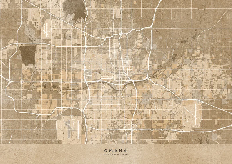 Αφίσα Map of Oklahoma City (OK, USA) in sepia vintage style