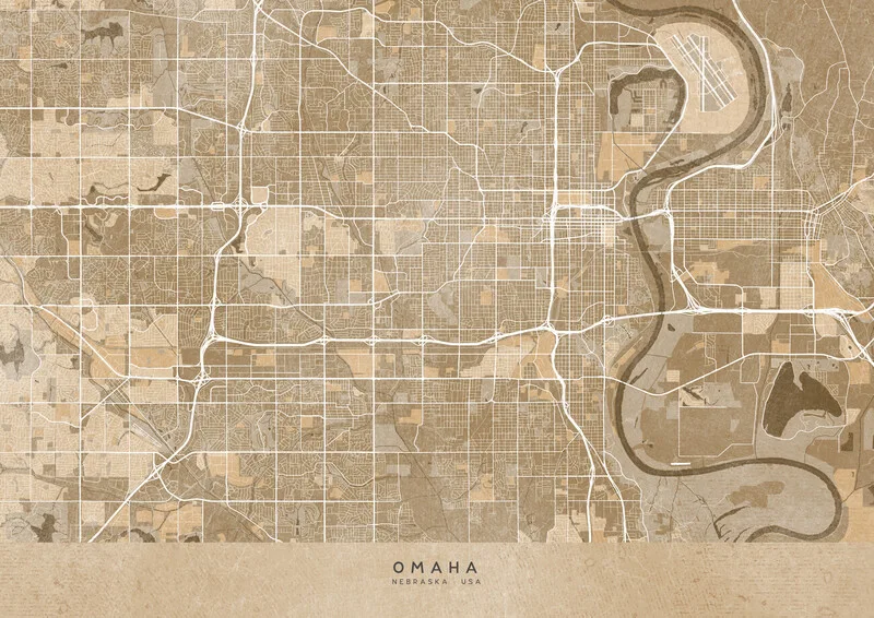 Αφίσα Map of Omaha (NE, USA) in gray vintage style