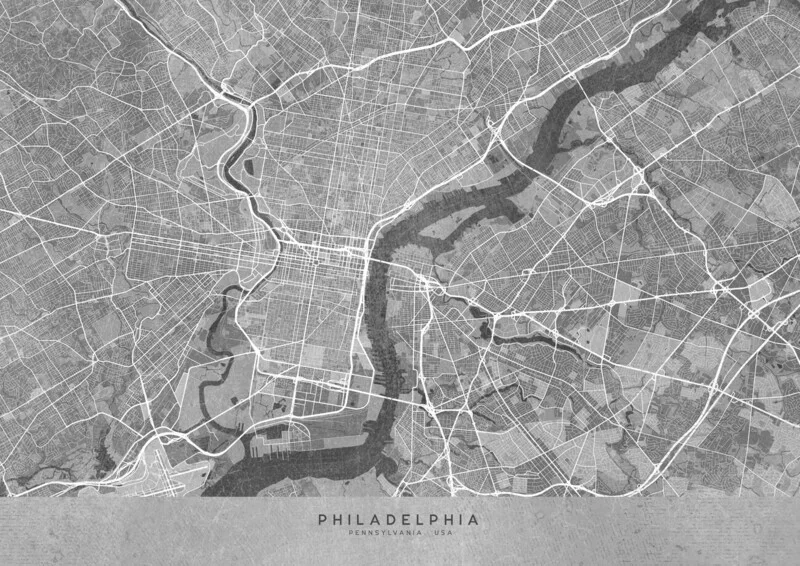 Εκτύπωση καμβά Map of Philadelphia (PA, USA) in gray vintage style