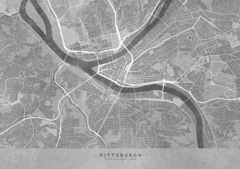 Αφίσα Map of Pittsburgh (PA, USA) in gray vintage style