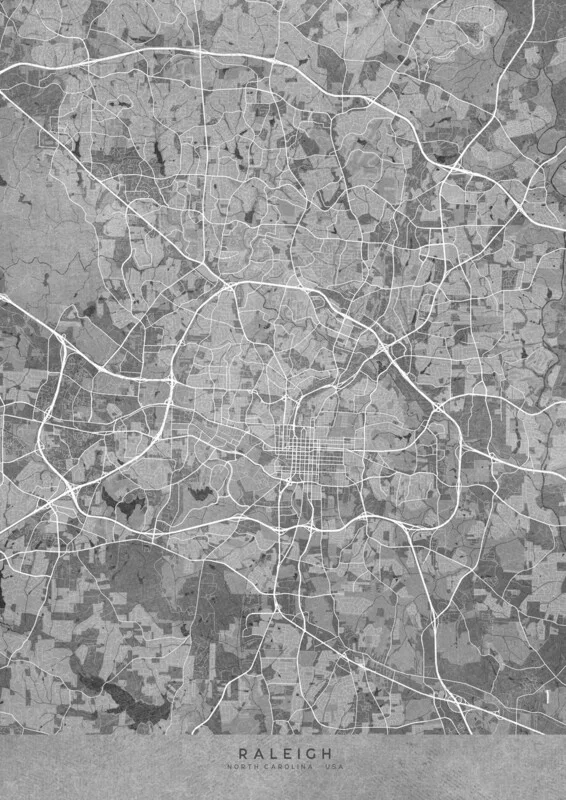 Αφίσα Map of Raleigh (NC, USA) in gray vintage style