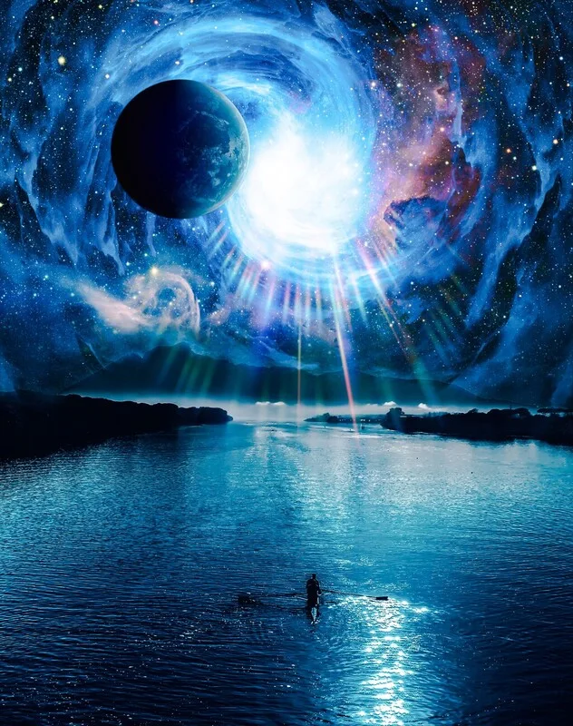 Αφίσα Navigate on a canoe towards the galaxy universe