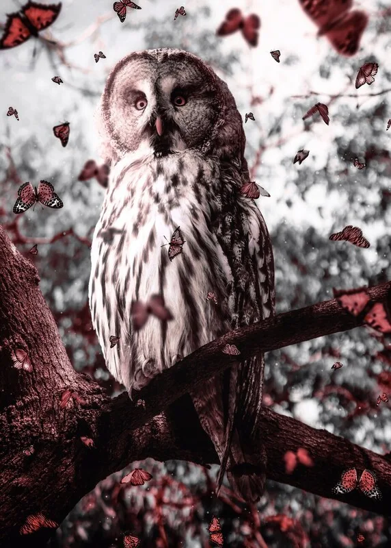 Αυτοκόλλητο Owl Leaves Butterfly Autumn Season