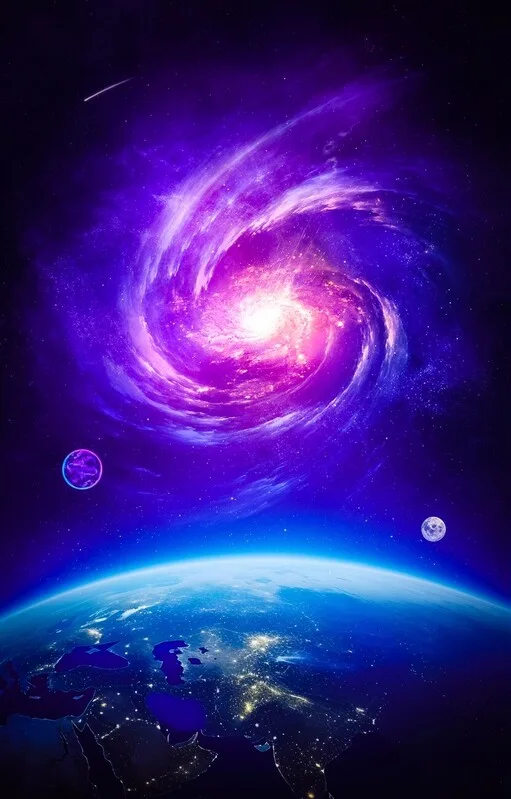 Αυτοκόλλητο Purple Galaxy and Planet Earth