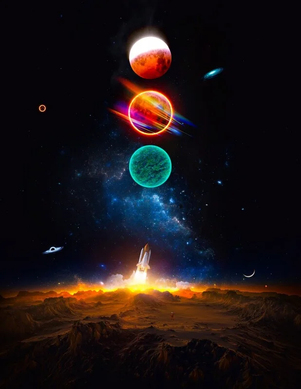 Εκτύπωση καμβά Rocket launch and single astronaut