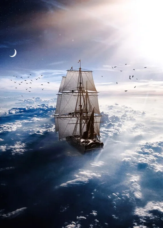 Αφίσα Sailboat sea of clouds fantatstic travel