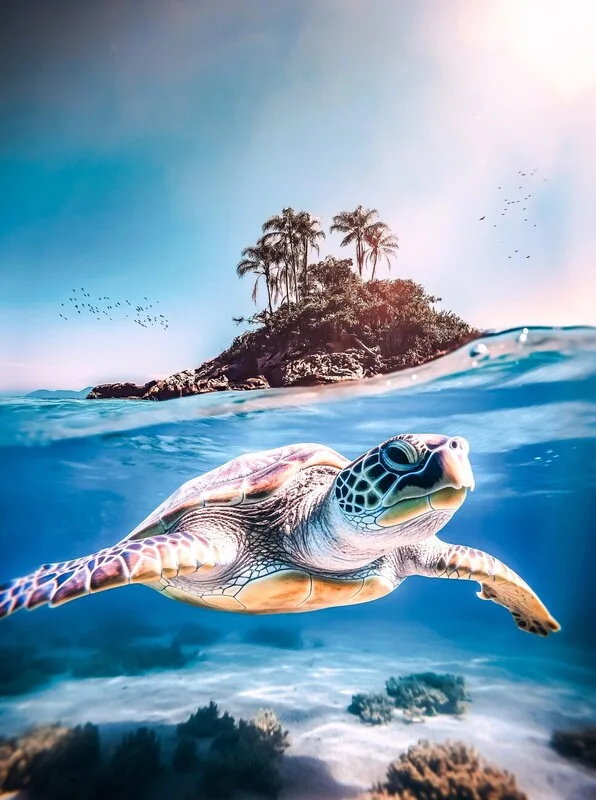 Εκτύπωση καμβά Sea turtle and island sanctuary