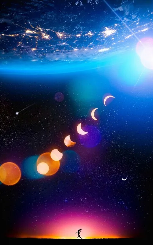 Αυτοκόλλητο Silhouette Dancers, Crescent Moons and Earth