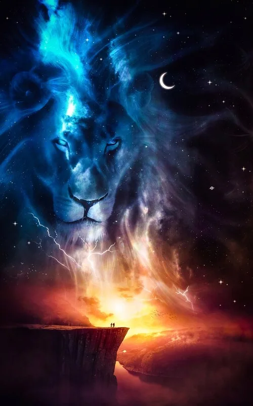 Εκτύπωση καμβά Spirit of animal totem lion, crescent moon and stars