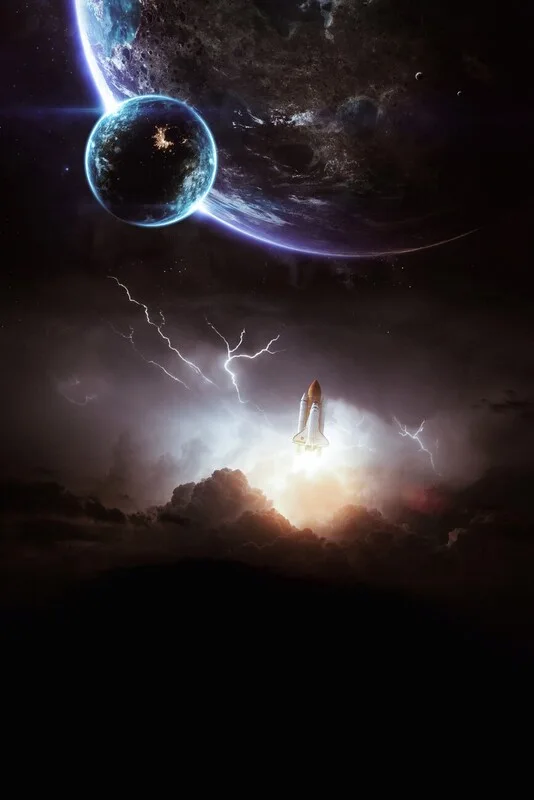 Εκτύπωση καμβά Takeoff of the rocket in the lightning over the clouds
