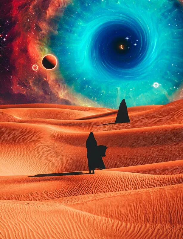 Αυτοκόλλητο Two veiled silhouettes in the desert dunes