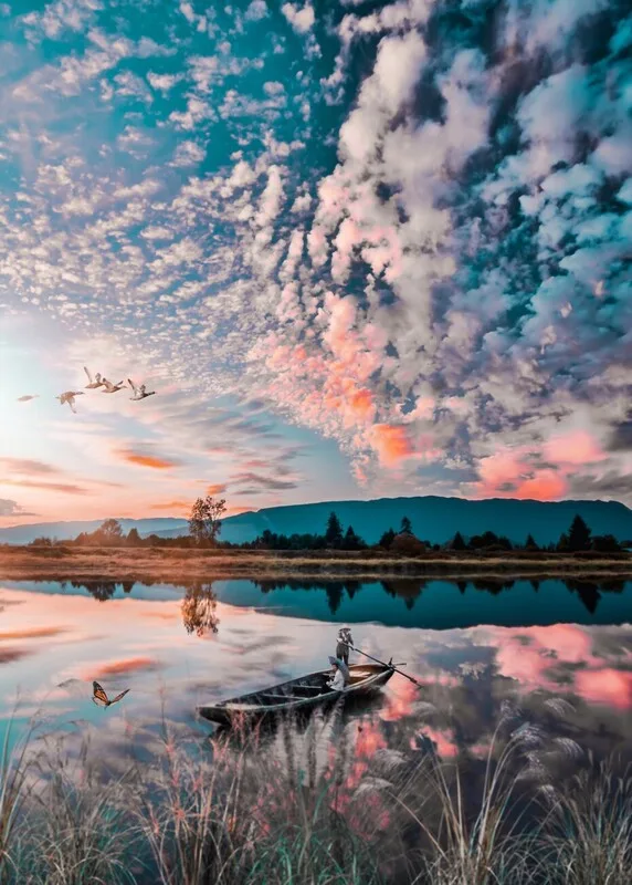Αφίσα Wooden boat on a river in Asia