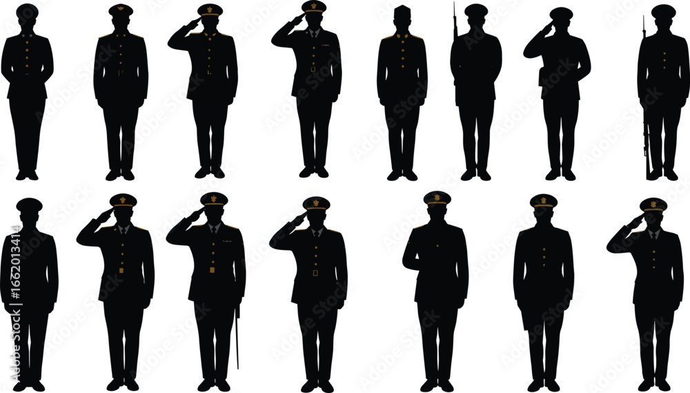 Εκτύπωση καμβά Military personnel silhouettes in uniform, saluting, standing at attention, hold