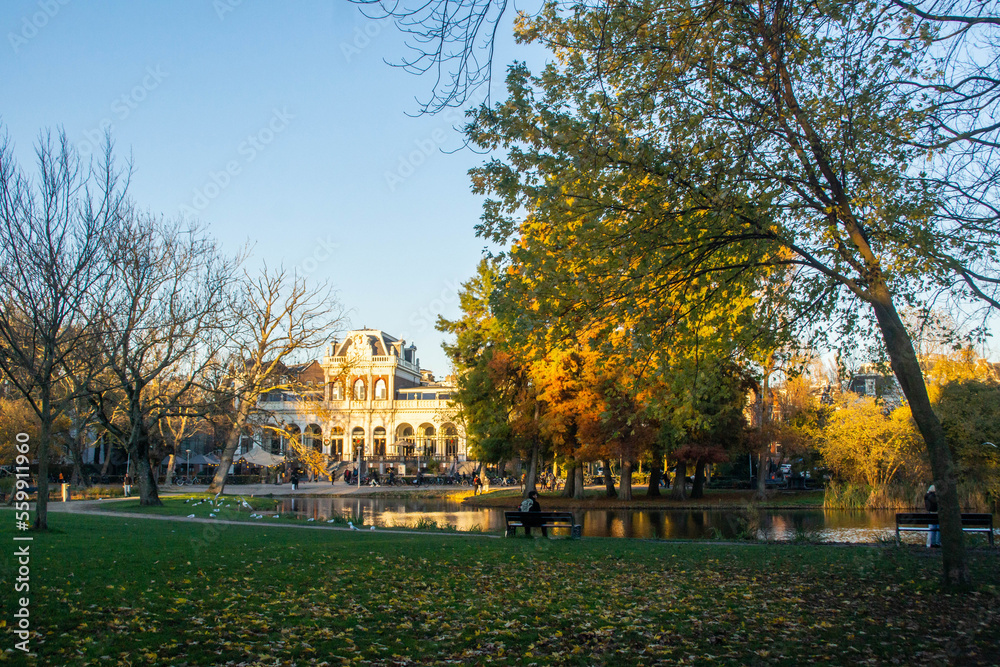Εκτύπωση καμβά Vondelpark lake in Amsterdam in autumn